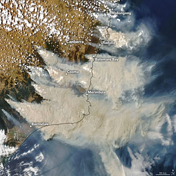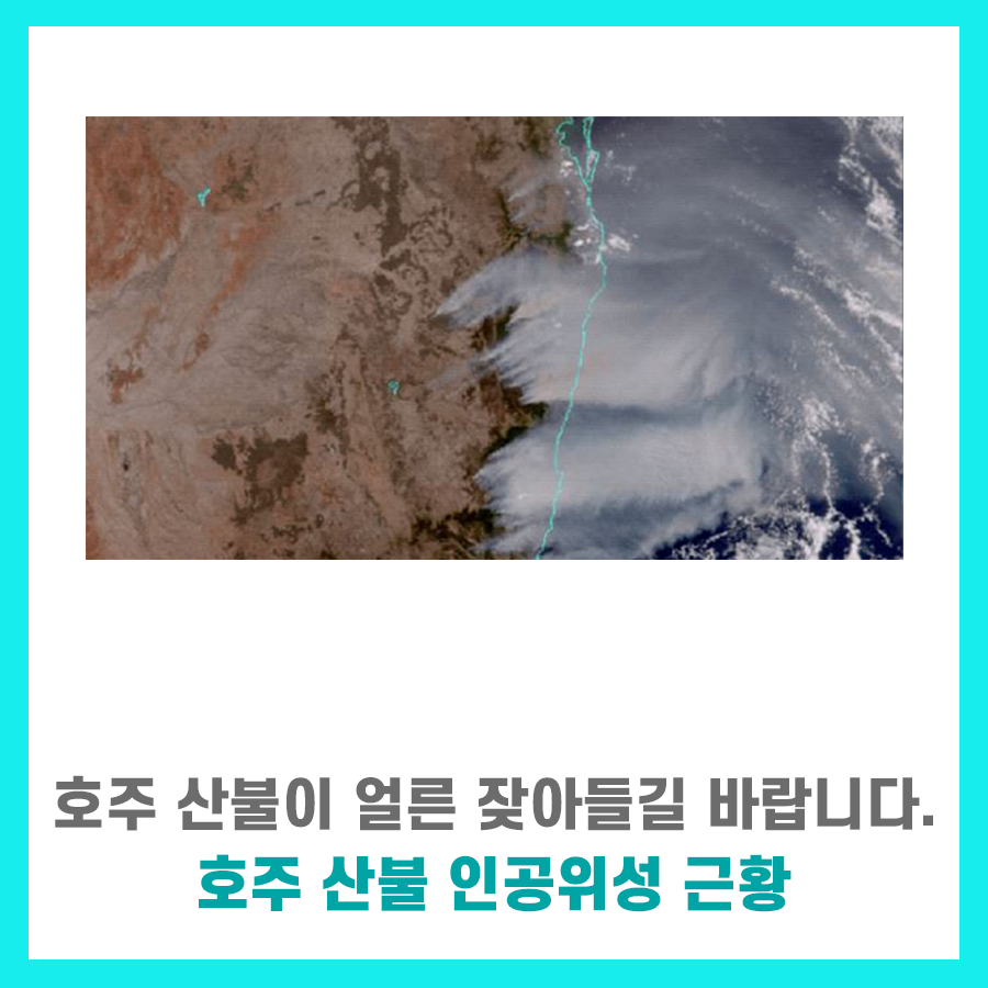최근에 찍은 또 다른 오스트랄리아 산불의 인공위성 사진을 봐도 회색 연기로 깊은 바다가 무서워 보여요.4개월 동안 정말 크게 번지고 있는 호주 산불이 빠른 시일 내에 진화되기를 바랍니다.