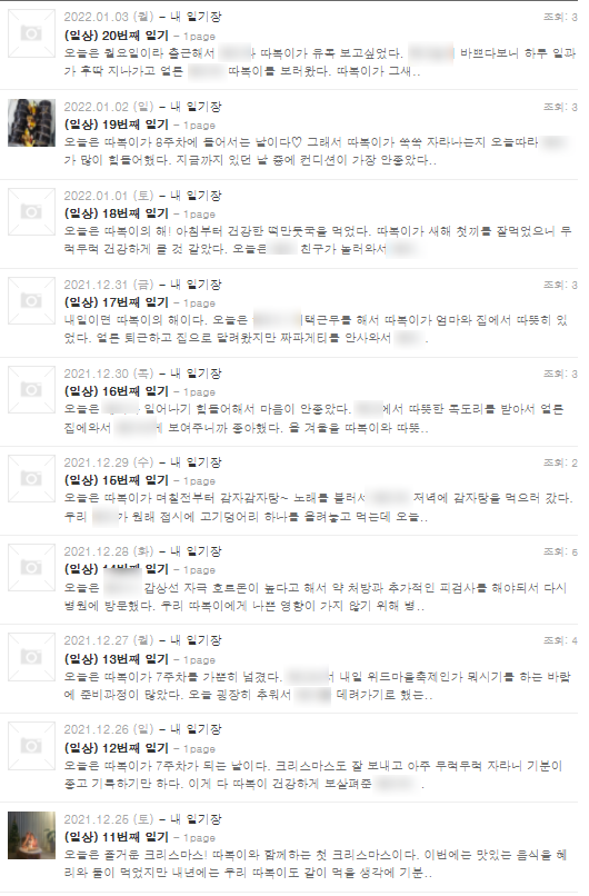 그리고 남편이 열심히 쓰고 있는 맘스 다이어리.. 벌써 40일째인데도 한번도 빼놓지 않고 열심이다.