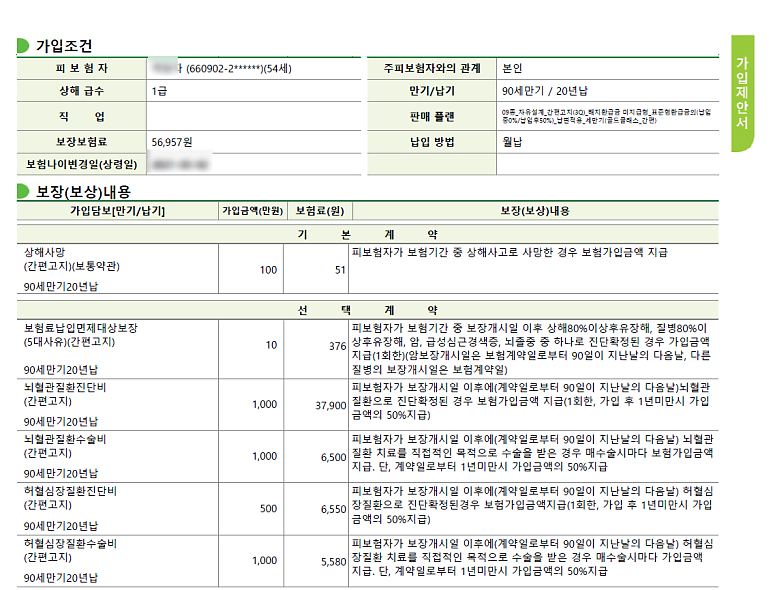 이번에 의뢰하신 분은, 암과 2대 진단비를 따로 분리하여 진행한 건으로, 갱신형이지만 꽤 좋은 조건으로 매수된 케이스이므로, 살펴보도록 하겠습니다.