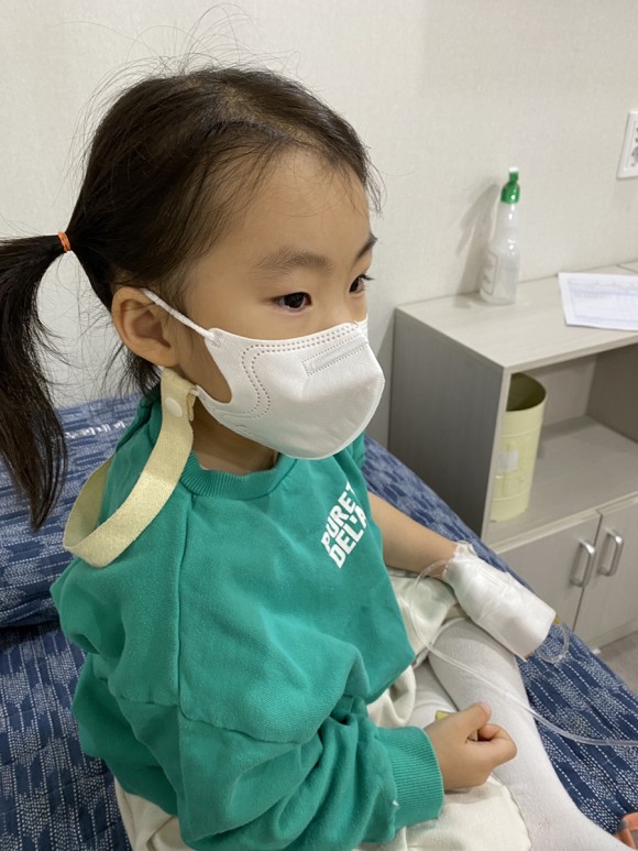 수액은 잘 들어가!아이들은 수액을 맞는데 오랜 시간이 걸린다고 한다ㅜ 하율은 조금 용량을 줄여서 20분 정도 소요될 예정