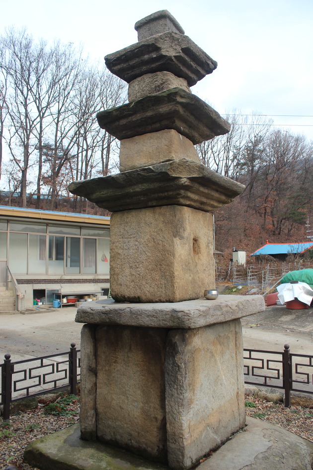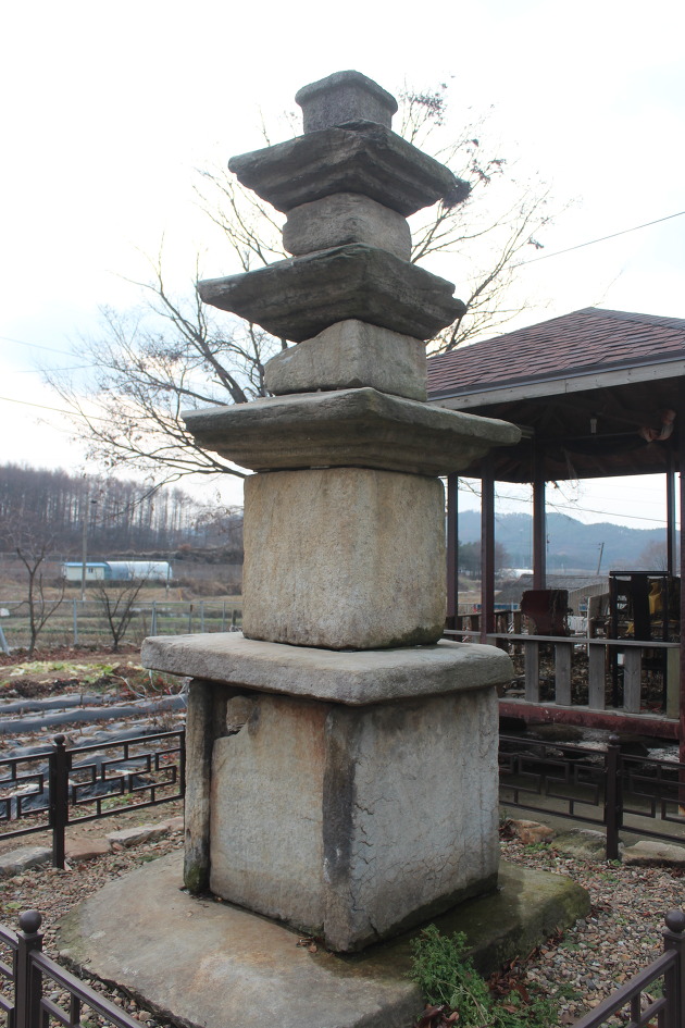 단층 기단으로 다소 높은 초층 옥신 중앙에 감실을 조성하고 있어 전체적으로 치석과 구성에서 조잡한 수법을 보이고 있는 점이 주목된다. 고려 시대 지방에서 조성된 양식으로 비교적 각 부재가 잘 남아 있는 편이어서 당시 이 지역 불교와 석탑 신앙에 관한 상황을 전하고 있다.