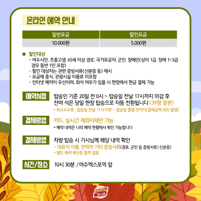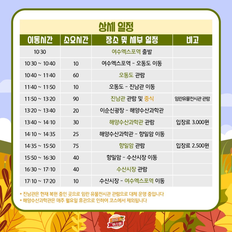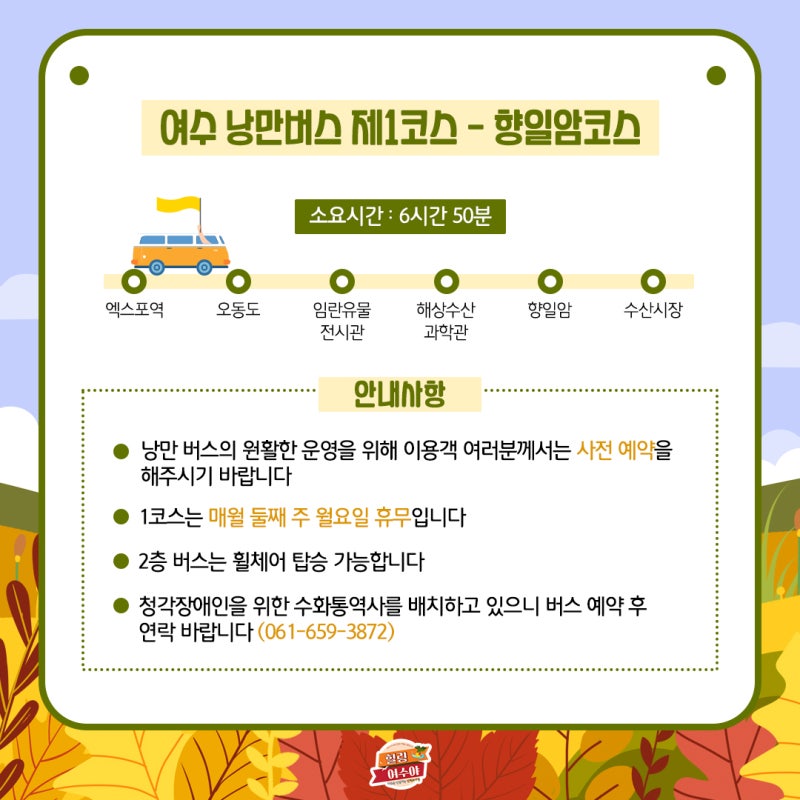 가을의 낭만 여수로 향하는 낭만버스 1코스(향일암코스)