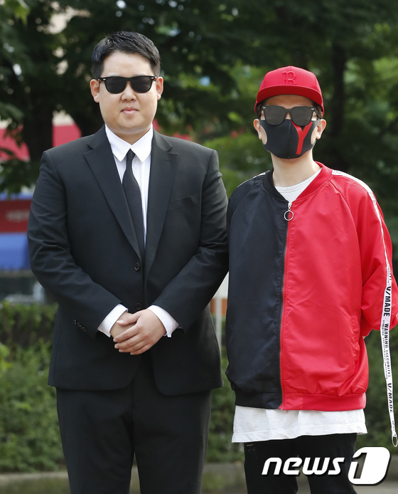 신비주의 가수 Y군(오른쪽)이 2일 오전 서울 여의도 KBS 신관 공개홀에서 열린 KBS 2TV 리허설에 김구라를 꼭 닮은 남자와 함께 참석해 인사하고 있다. 이날 Y군은 뮤반에 출연해 독보적인 매력으로 신곡 그라형 무대를 장식한다.