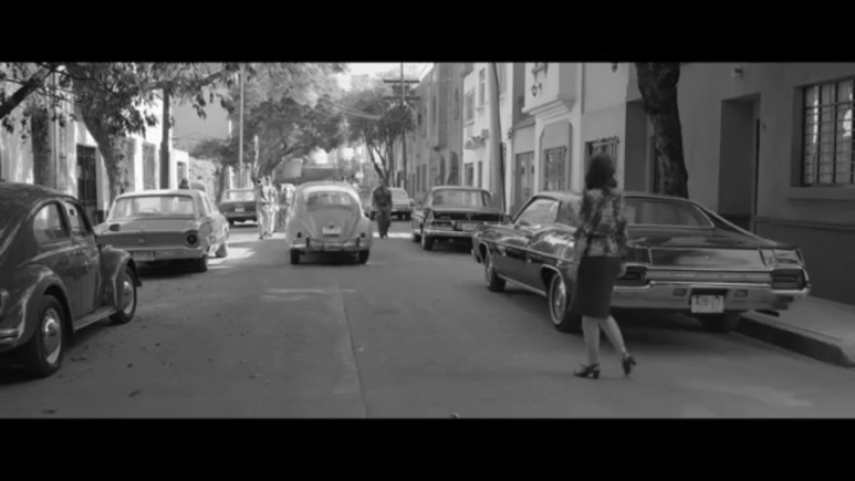 가정부 클레오가 일하는 곳은 중형차가 드나들고 가정부가 2명이나 있는 부유한 집.그 집에는 차가 드나드는 현관이자 주차장으로 쓰는 공간이 있는데…거기가 영화 시작 크레오가 물청소를 했던 곳입니다.처음에는 그렇게 예뻤던 곳, 주인집 남자가 드나드는 거대 차가 등장하면 개똥이 여기저기 보이고 차는 개똥을 부수고 집으로 들어옵니다.