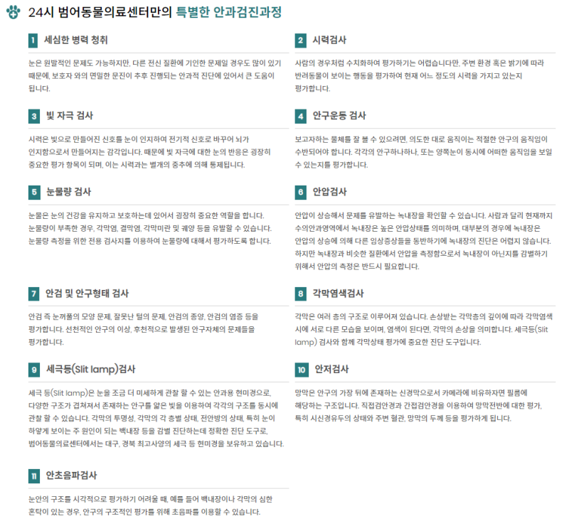 뽀식이는 둘 다 노화로 인해 왼쪽은 백내장, 오른쪽 각막부종이 있다.맥시트롤로 유지하다가 언제부턴가 넣어도 오른쪽 눈이 빨갛게 충혈됐다.동네 병원에서는 각막에 상처와 부종이 있어 항생제 처방을 받았고 처음에는 효과가 있는 듯했으나 다시 붉게 충혈됐다.전에 청담에 있는 안과전문병원을 방문했는데 솔직히 차도가 없어 두세 번 다녔다. 안 가본 처방해준 연고만 바르고 유지 정도만 해주는 정도였는데 최근 급격히 나빠져서 안과전문병원에 급히 찾아왔더니 몇 가지 리뷰가 좋아 방문하게 됐다.