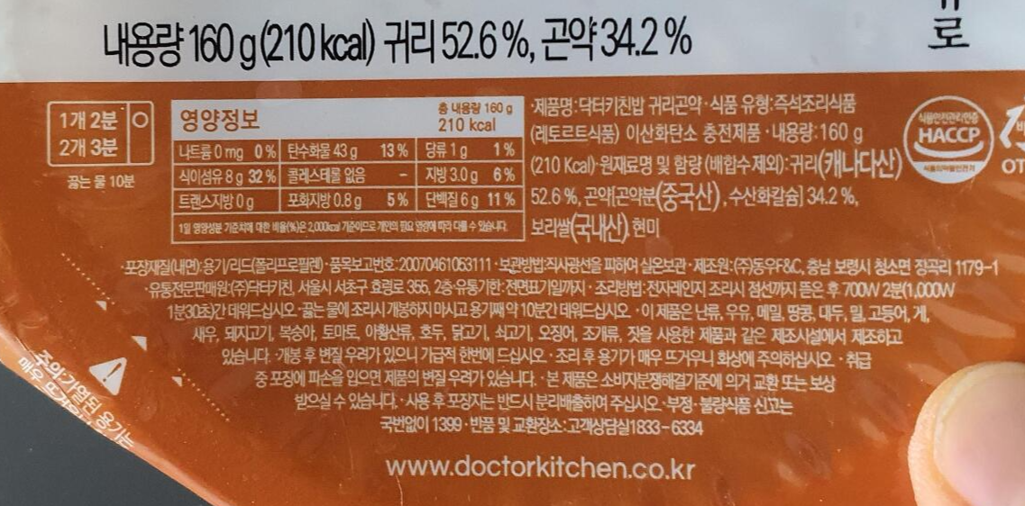 닥터키친밥 현미곤약 햇반 현미밥 칼로리/식감