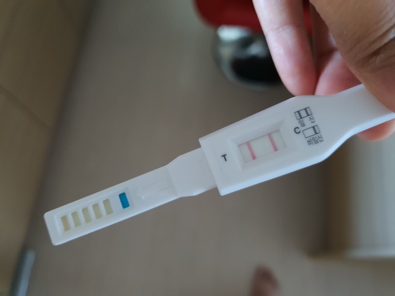 올해 12월 괌 여행에서 돌아온 뒤 생리를 하지 않아 속이 계속 안 좋아 혹시나 해서 시험기를 껐다.원래 생리불순이라 여러번의 시험에서 실망아닌 실망을 한적이 많아서 이번에도 마음 편하게 위장약을 먹으려고 테스트 했다.