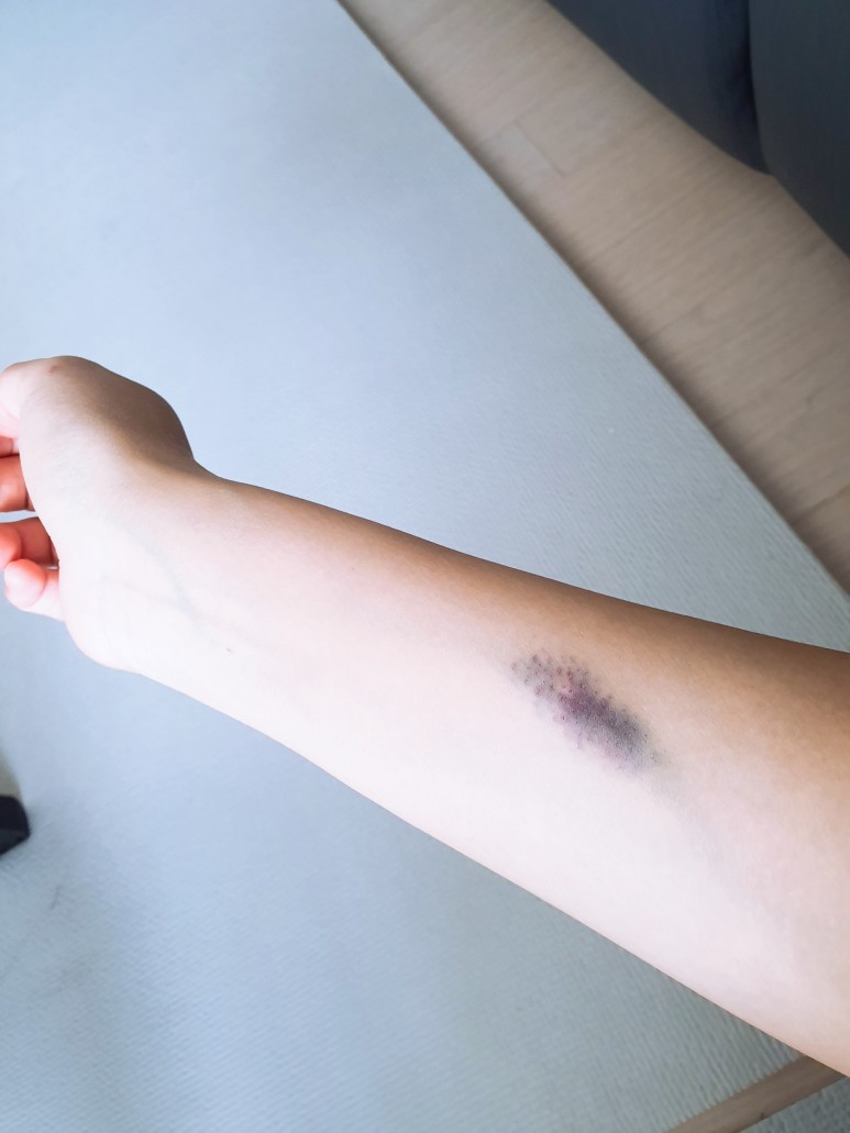 수액을 맞은 자국이 이렇게 멍이 들었다.볼때마다 생각나는 급성 편도염—