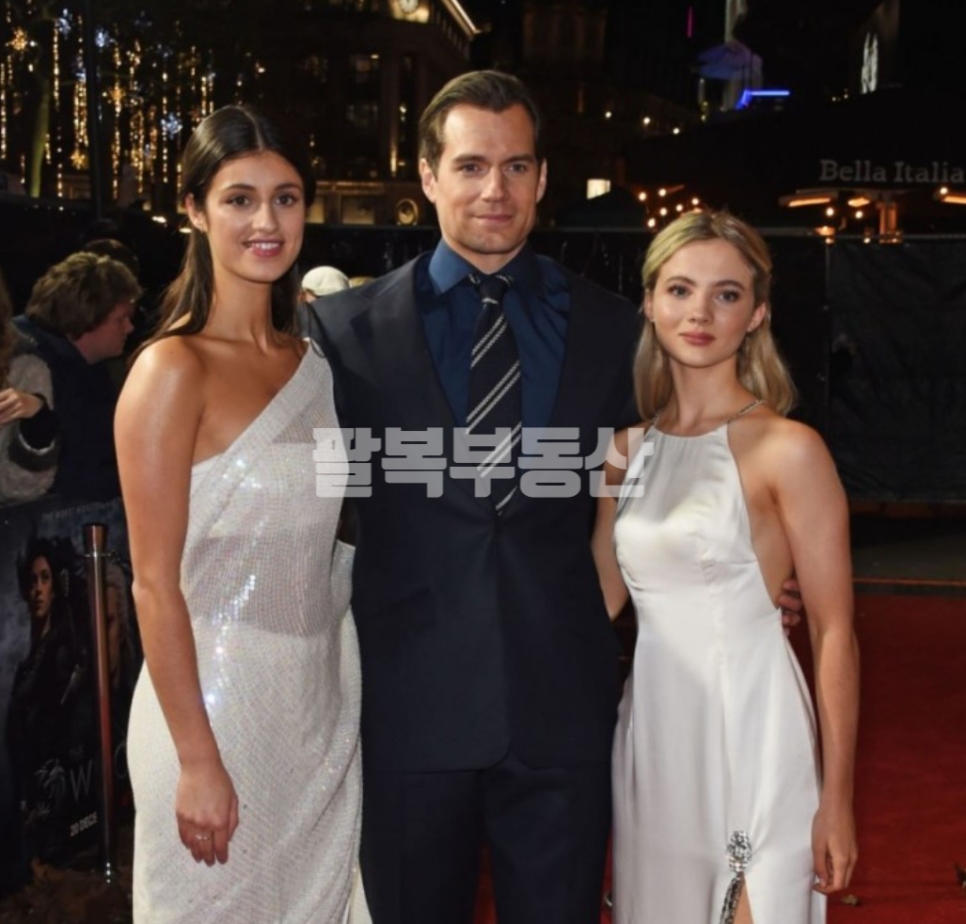 왼쪽부터 아니아 철로트라, 헨리 카빌, 프레이아 엘란입니다.아니 헨리 카빌 손을 어디에… 나쁜 손…
