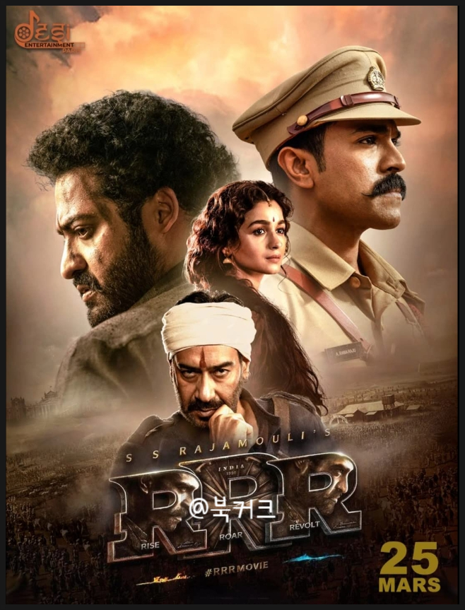 한국은 미개봉으로 현재 넷플릭스에서 볼 수 있는 rrr 영화! 인도에서는 2022년 올해 3월 25일 개봉한 영화라고 한다. 우리에게 잘 알려진 버프바리를 연출한 라자모리 감독이 메가폰을 잡았고, 각본 또한 그가 맡았다고 한다. 라이즐로 알리볼트… 그래서 머리글자를 따서 넷플릭스 rr이라고 알고 있는데 각각 그 의미를 살펴보면 Rise는 저항, Roar는 포효, 그리고 마지막 Revolt는 봉기와 같은 의미를 가지고 있다고 한다. 이 영화의 배경은 1920년대 인도 제국 시대를 바탕으로 사건이 전개되는데 여기서 두 남자 주인공이 얽히고설킨 것. 운명을 다룬 영화라고 생각하면 될 것 같아.