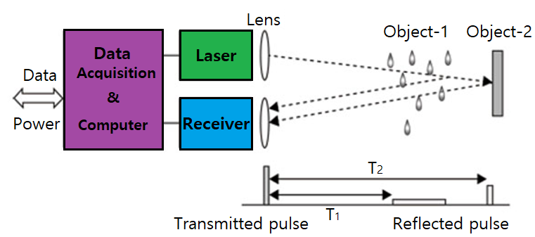 - o라이더(LIDAR, Light Detection And Ranging)는 기본원리는 레이더와 동일하나 주로 905nm 파장의 펄스레이저를 이용하여 거리정보를 획득