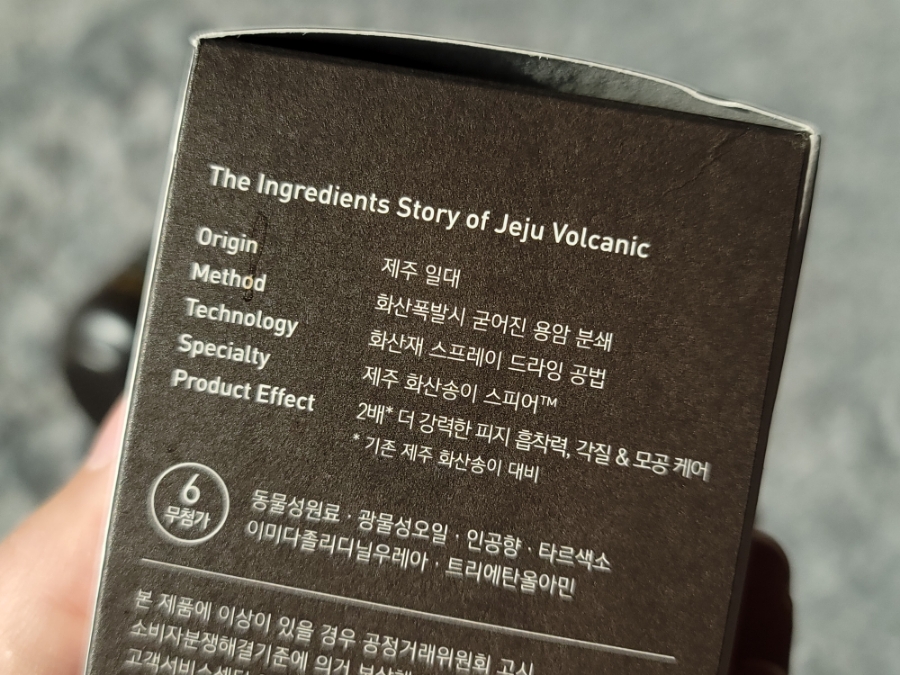 화산송이 팩은 그냥 이름인 줄 알았는데 자세히 보니 화산폭발 때 굳은 용암 분쇄라는 내용을 보고 정말 성분이 들어있구나 하는 생각이 든 상품. 기존에 판매되던 제품보다 2배나 강력한 피지흡착력을 가진 ‘슈퍼’ 화산송이 모공마스크가 기대됐던 제품!