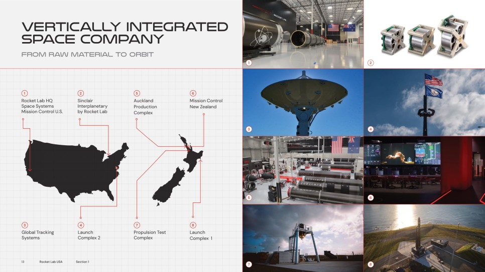Rocket Lab은 로켓 발사대 2개소, 발사 컨트롤 센터 2개소, 로켓 공장 2개소, 시험 발사대 1개소와 글로벌 로켓 추적 시스템을 가지고 있습니다.