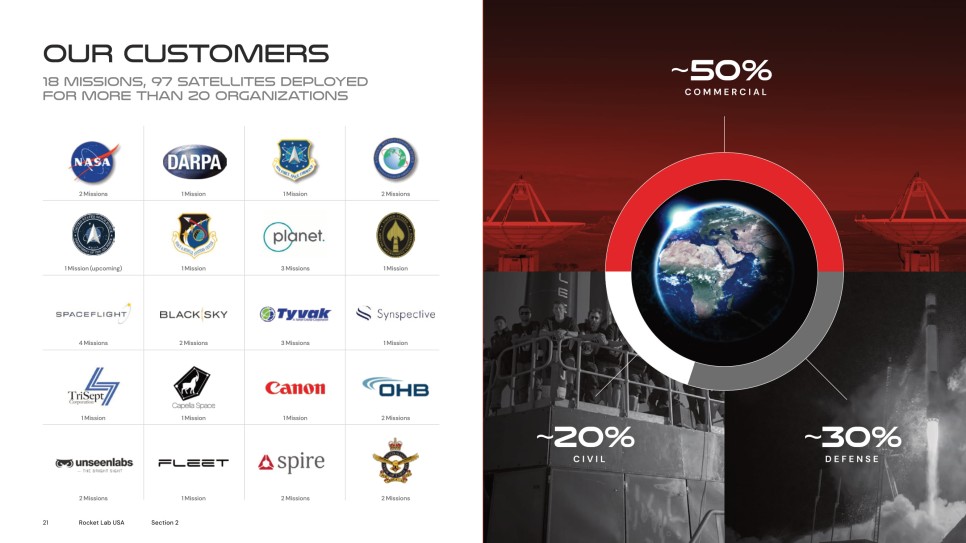 Rocket Lab이 이미 인공위성 별을 100개 이상 우주 궤도에 쏘아 올린 만큼 보유하고 있는 고객사도 다양합니다.