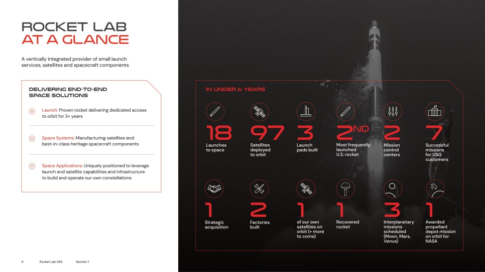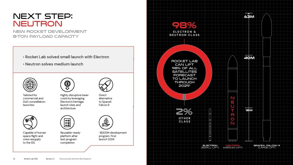 Rocket Lab은 지금까지 18번의 로켓 발사를 했으며 104개의 인공위성을 궤도에 올렸습니다.(투자자의 프레젠테이션 이미지는 3개월 전 자료이며, Rocket Lab 홈페이지의 최신 자료는 104개의 인공위성을 궤도에 올렸습니다.