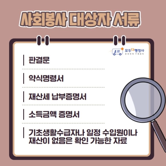 이렇게자격과서류를갖추어서심사가이루어지고,만약생활고가입증되지않으면사회봉사를신청할수없고제한받게됩니다.