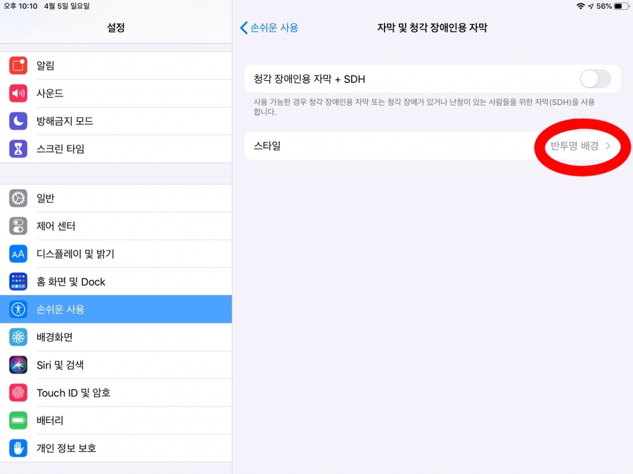 그다음에 설정에 들어가서 사용자막 및 청각장애인용 자막을 눌러요*반투명 배경만 해제하실분은 여기로 오세요!*