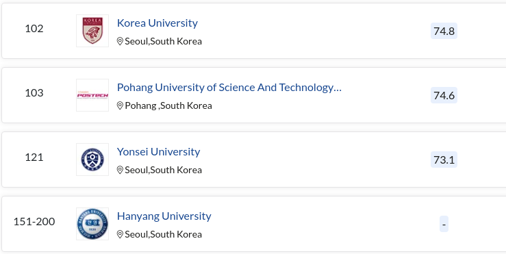 고려대 / 포항공대 / 연세대