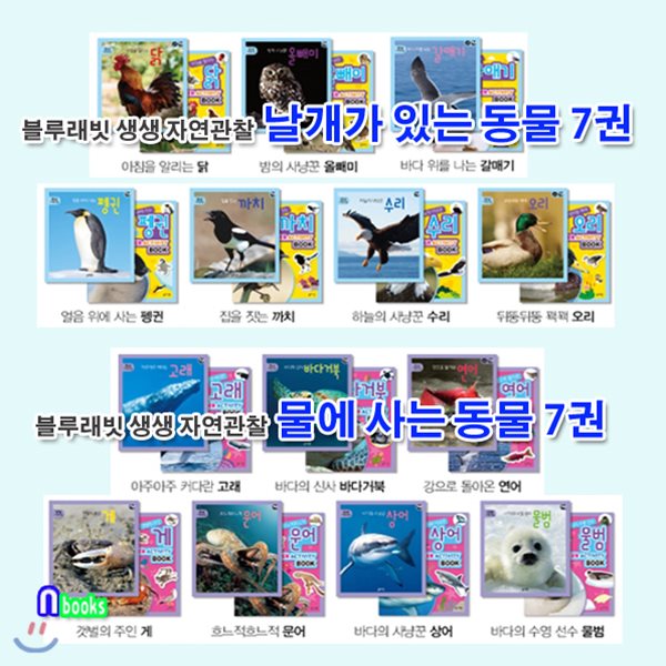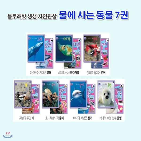 이 책 200*300mm / 32쪽 / 양장본 액티비티북 205*253mm / 16쪽+스티커 2장으로 구성되어 있습니다.물에 사는 동물은 고래, 바다거북, 연어, 게, 문어, 상어, 바다표범 등 7권으로 되어 있습니다.각 주제당 워크북이 1권씩 있고 토끼펜을 활용할 수 있어서 좋아요.