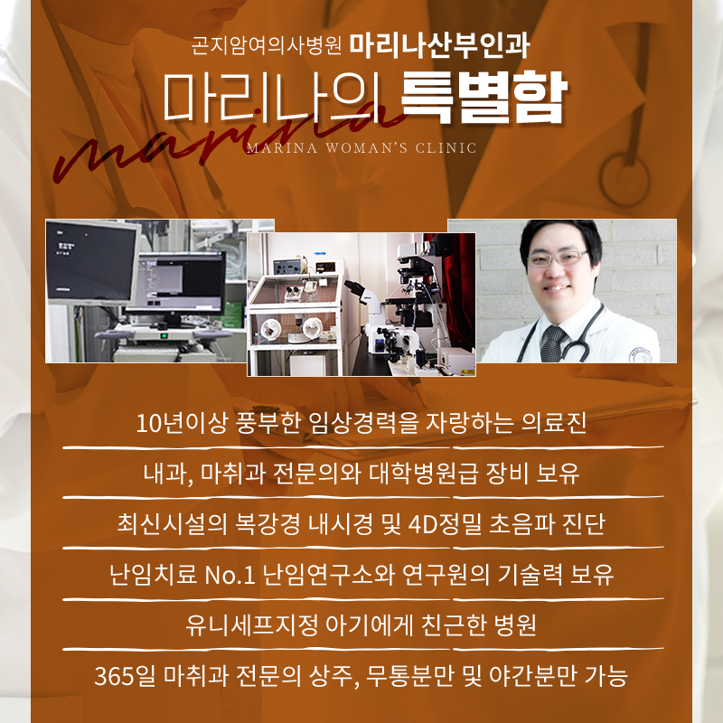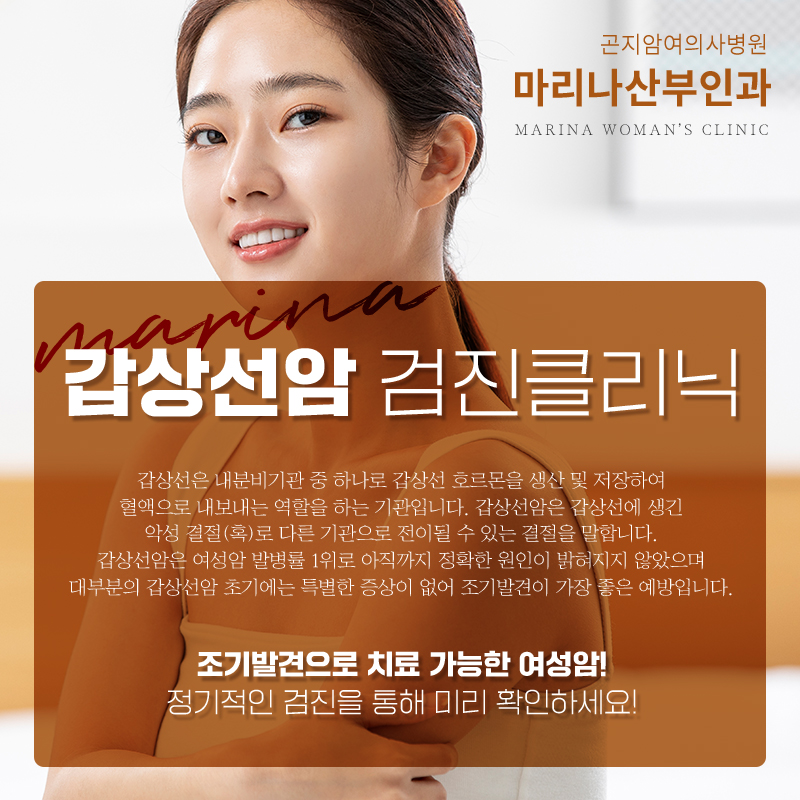 신체이상 증상을 조기에 발견하고 치료하기 위해서는 주기적인 건강검진을 받는 것이 중요한 만큼 장기적으로 안심하고 오랫동안 내원할 수 있는 마리나 곤지암 여의사병원을 찾아 진료를 보는 것도 좋은 대안이 될 것입니다.마리나는 내과, 산부인과, 소아과, 동네과 전문 의료진이 상주하고 있는 곳이기 때문에 여성의 발병률이 높은 갑상선암을 진료하기에 좋은 환경이 조성되어 있습니다.갑상선 호르몬은 부인과적인 부분에서도 큰 영향이 나오므로, 부인과 진료를 함께 할 수 있는 장소에서 진행해 봅시다.대학병원급의 최첨단 장비로 정확한 진단과 결과를 받을 수 있도록 시행하고 있는 만큼, 안심하고 내원하여 빨리 건강을 되찾을 수 있는 시간을 가졌으면 좋겠습니다.
