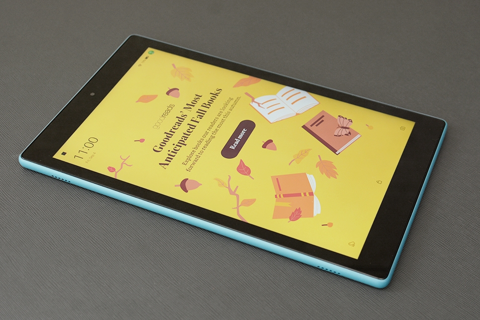 전면에는 10.1인치, 1080 P FHD 디스플레이를 탑재했습니다. 이 제품이 싼 비결 중 하나는 아마존 광고가 나온다는 거에요. 실제 사용으로 크게 불편하다고 느낄 정도는 아니네요. 디스플레이 자체는 색상이나 밝기가 가격에 비해 만족할 만한 수준인데요. 화이트 화면에서만 밑에 노란 멍이 좀 눈에 띄네요 워낙 저렴한 제품이라 감수해야 할 부분이죠