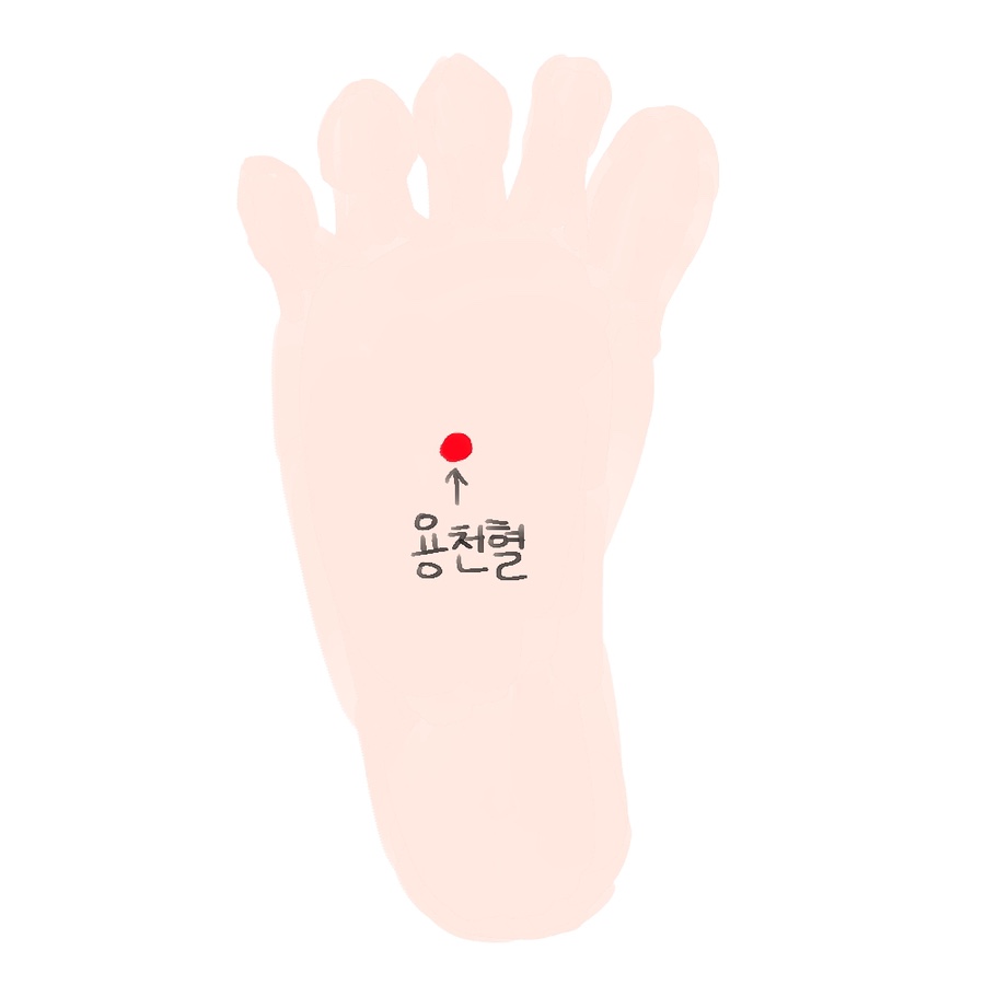 엄지발바닥에서 엄지뼈가 끝나자마자 안에 위치한 용천혈