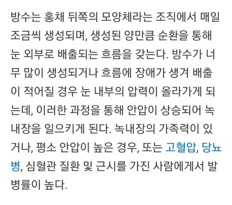 2) 시신경이 다른 사람보다 약한 경우 또는 3) 시신경 혈류량이 부족한 경우 녹내장이 올 수 있습니다.