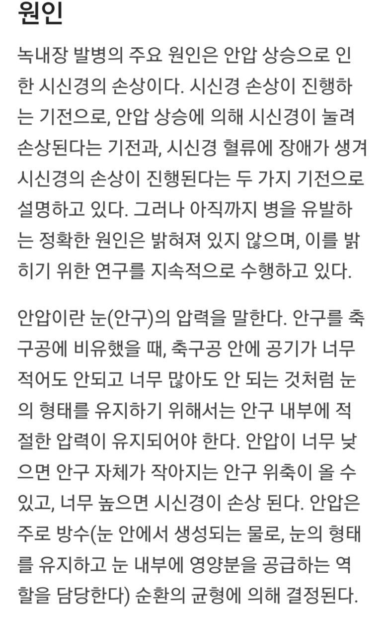 녹내장의 원인은 안압이 높습니다