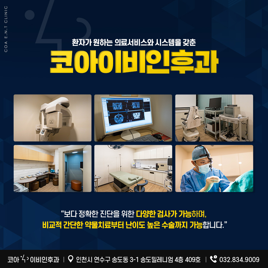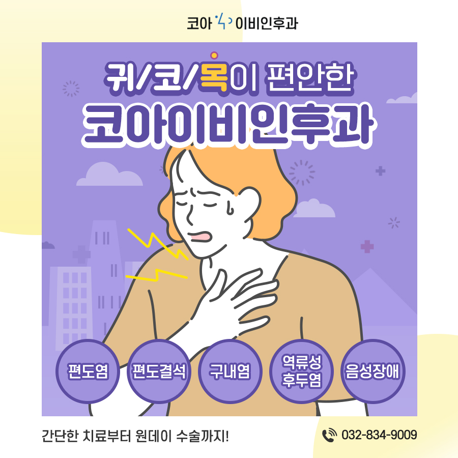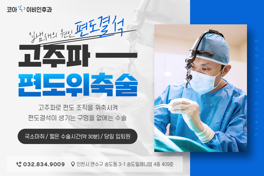 “만약 인천, 송도에 거주하는 분 중 편도염 치료(수술 포함)가 필요하신 분은 송도코아이비인후과를 방문해 보시는 것이 어떻습니까”