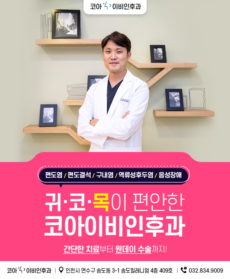 인천이나 송도지역에서 목질환 진료를 잘하는 이비인후과를 찾으신다면! 송도코아 이비인후과를 이용해보세요!인천광역시 연수구 컨벤션센터 69 송도 밀레니엄