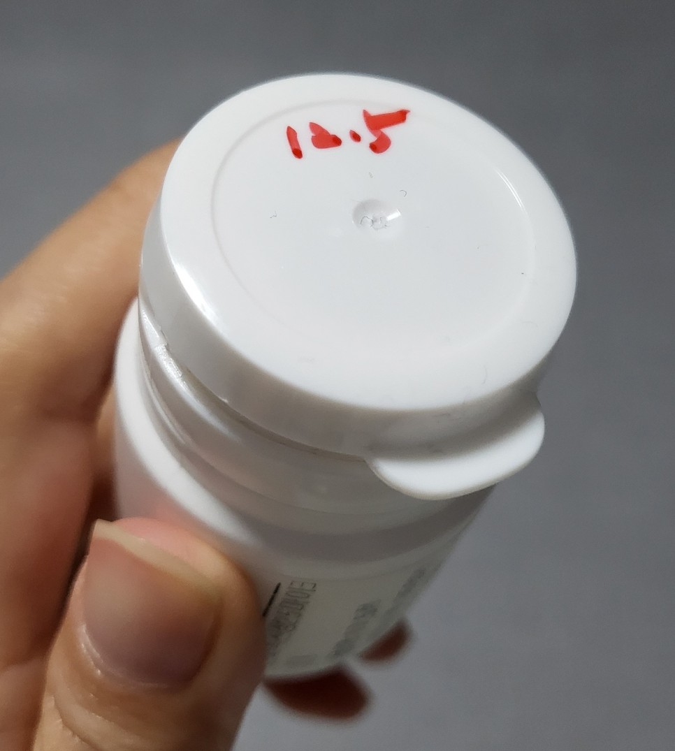 8주차에 다시 검사 결과에 따라 함량이 더 낮은 이 약을 먹을 수도 있다.이는 25g인데 그것을 반으로 쪼개 12.5g이다.
