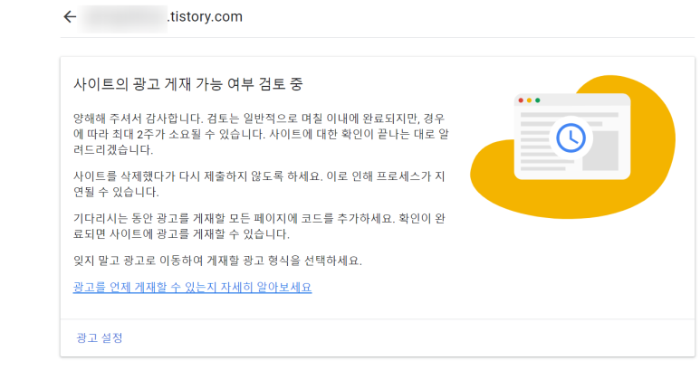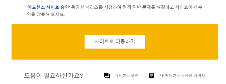 애드센스로 돌아가 재검토를 요청하기 위해 사이트로 이동하기 클릭