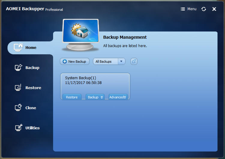 간단한 메뉴 구성으로 사용하시기 편리합니다.주로 사용하는 메뉴는 “Backup” 과 “Restore”, clone, utilites에도 유용한 기능을 포함하고 있습니다.