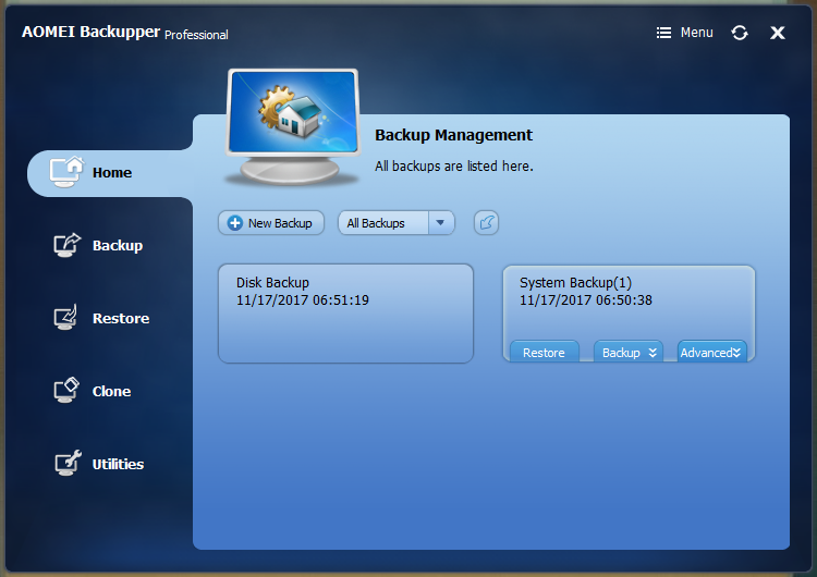 OS, Disk, Partition, file backup 및 복구 솔루션 AOMEI입니다.