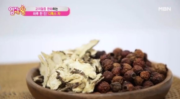 #산사나무의 열매인 산사나무에 함유된 사포닌과 트리텔펜 성분은 체내에 각종 노폐물을 제거하고 혈중 콜레스테롤을 배출시키는 효과가 있다.이 밖에 혈압과 콜레스테롤을 낮춘다.