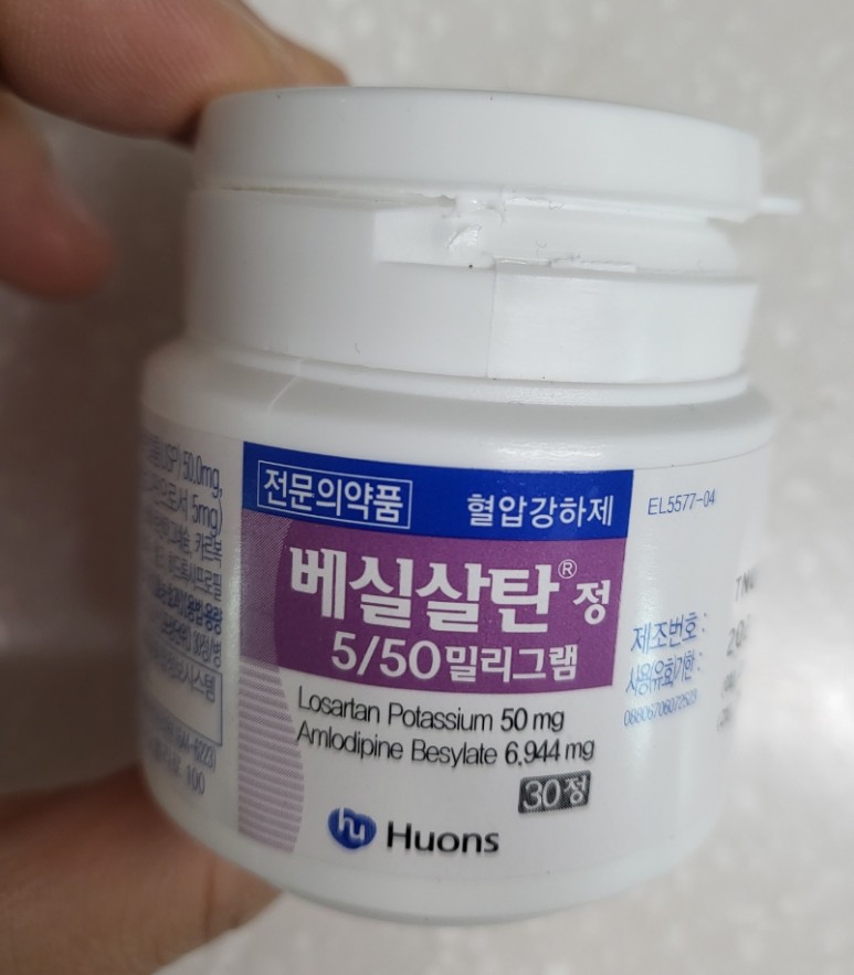 베살탄 효능효과 1. 암로디핀 또는 로살탄 단독요법으로 혈압이 적절히 조절되지 않는 본태성 고혈압 2. 제2기 고혈압 환자에게 치료목표 혈압에 도달하기 위하여 복합제 투여가 필요한 환자의 초기요법 베살탄용법 용량이 약의 권장 용량은 1일 1회 1정이며 식사와 관계없이 물과 함께 복용한다. 가능하면 매일 같은 시간에 복용할 것을 권장 출처 – 네이버 지식백과