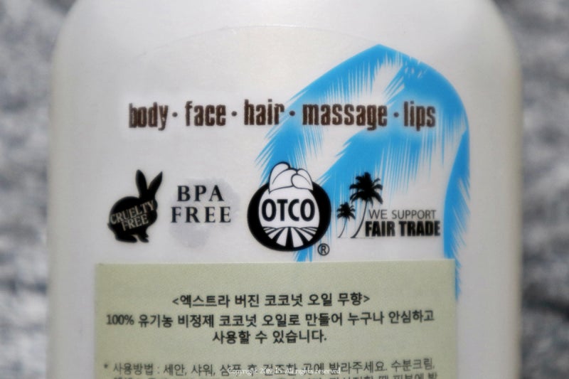 무엇이든 바를 수 없는 임산부에게는 유기농 제품을 추천한다.피부 흡수를 통해 태아에게 화학 성분이 전달될 수도 있으니 가능하면 유기농 제품을 선택하세요!이 제품은 유기농 코코넛 오일이기 때문에 화학물질이나 향료, 그리고 색소가 전혀 들어 있지 않은 것이 장점이다.유기농 비정제 코코넛오일로 돼 있어 보니 임산부도 걱정 없이 써도 될 것 같았다.