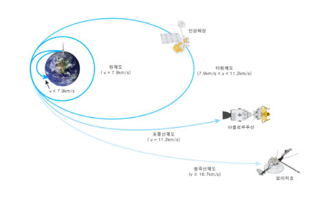 반대로 속도가 생각보다 높을 경우에는 당연히 지구를 탈출할 수 있는 것입니다.