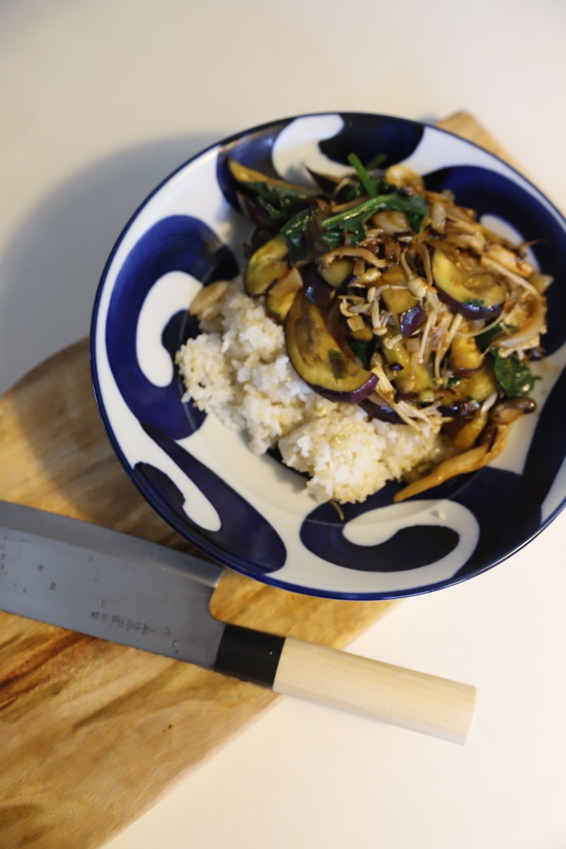 이 칼은 일본의 전통적인 야채 칼로 나키리라고 불리기도 합니다. 그래서 채소 기반 요리로 뭘 만들어볼까 고민하다가 남편이 좋아하는 가지 덮밥을 만들기 위해 가지에서 냉장고 안에 잠들어 있던 조각 채소를 꺼내 만들어 보기로 했습니다.