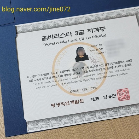● 커피바리스타 자격증 – 1,2,3급으로 구성되어 있다.