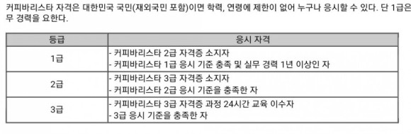 - – 3급 : ♧ 커피바리스타 3급 자격과정 24시간 교육이수자 ♧ 3급 응시기준 충족자