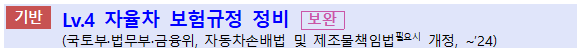- ▪(개선)운전자 개입 없는 Lv.4 자율주행 상황의 사고에 대한 제조사 등의 책임원칙을 명확히 하는 등 Lv.4 자율주행보험 시스템 구축