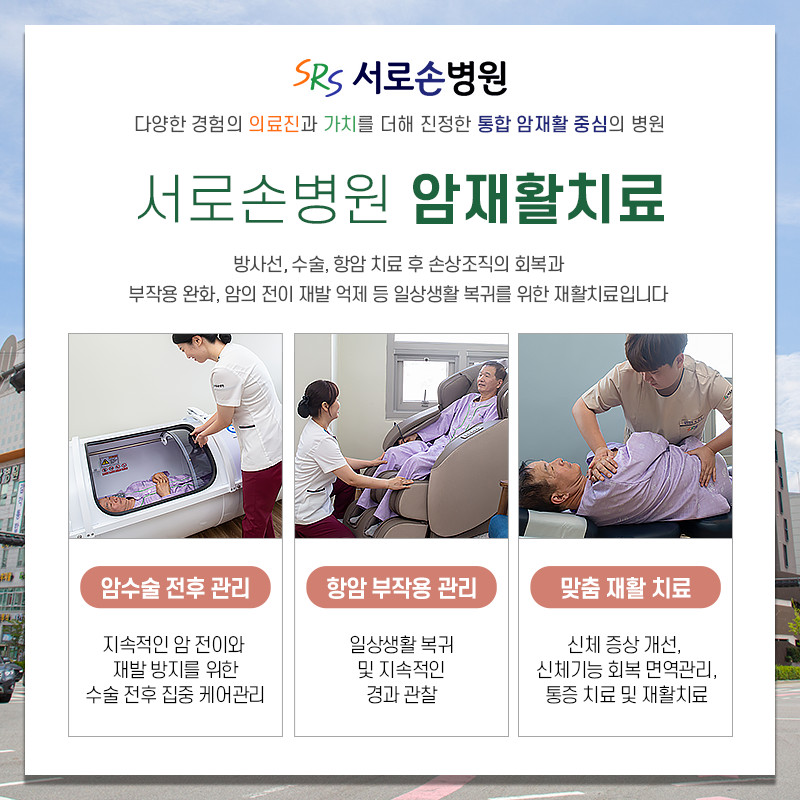 그리고 수술을 받은 후에 합병증이나 좋지 않은 영향력을 받을 것이 걱정된다면 그럴 때에도 암 재활치료를 받아야 합니다. 그리고 빨리 회복되어 일상으로 돌아갈 필요가 있는 현대인들도 시간에 비해 회복속도가 더 빨라지도록 병원을 찾는 것이 방법입니다.