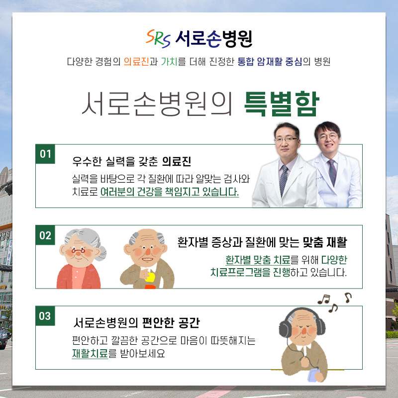 혹은 다른 부위로 전이돼서 새로운 암이 출현할 수도 있어요 따라서 암 치료 프로그램을 충실히 운영하는 곳을 중심으로 수술을 받은 뒤 재활을 받을 병원을 알아봐야 합니다.