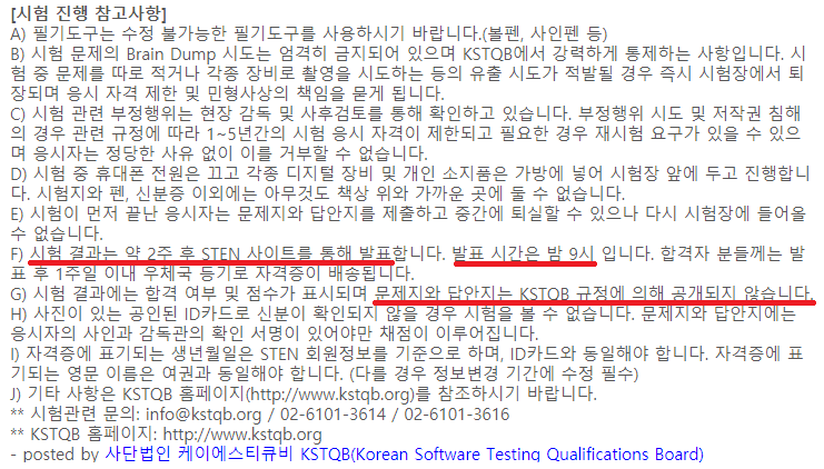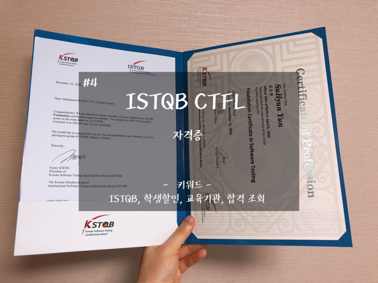 시험을 치르기 전 감독관이 이 종이 자격증을 분실했을 경우 재발급까지는 또 3주 정도의 기간이 소요되므로 자격증 사진을 찍어두거나 스캔을 해두는 것을 추천한다고 한다. 자격증을 요구하는 회사에서 KSTQB에 전화하면 확인은 해주지만 자격증 외에는 별다른 확인 방법이 없으니 꼭 사진을 찍어두길 바란다.