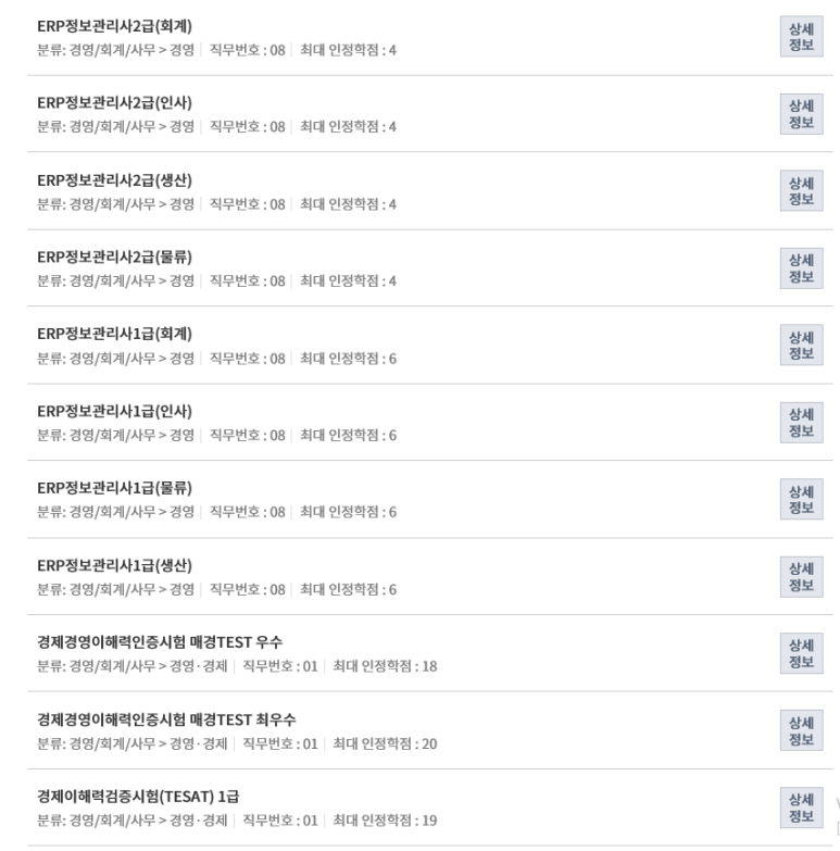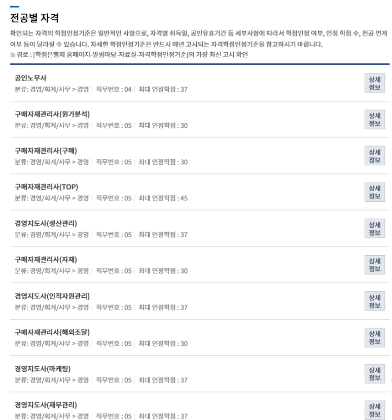 학점인정자격증(경영전공 단위로 인정되는 자격증 종류)