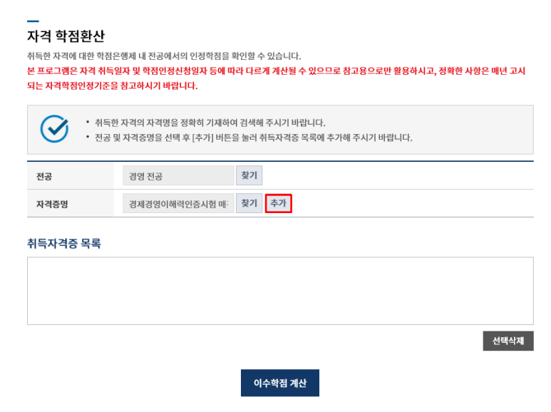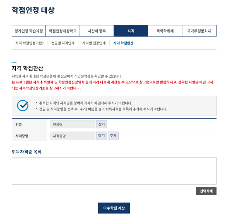 이밖에도주의해야할점은같은자격증이라도취득연도,날짜에따라인정되는학점이달라질수있으니취득날짜를꼭정확하게기입해주세요.웃음)