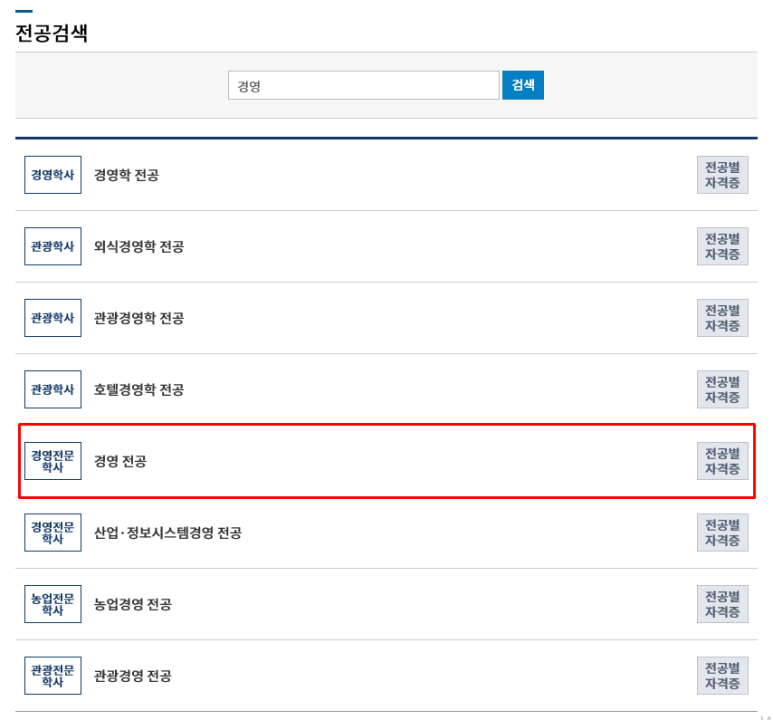 예를 들면, 경영전문학사에서 어떤 자격증이 전공학점으로 인정되는지 알아봅시다~