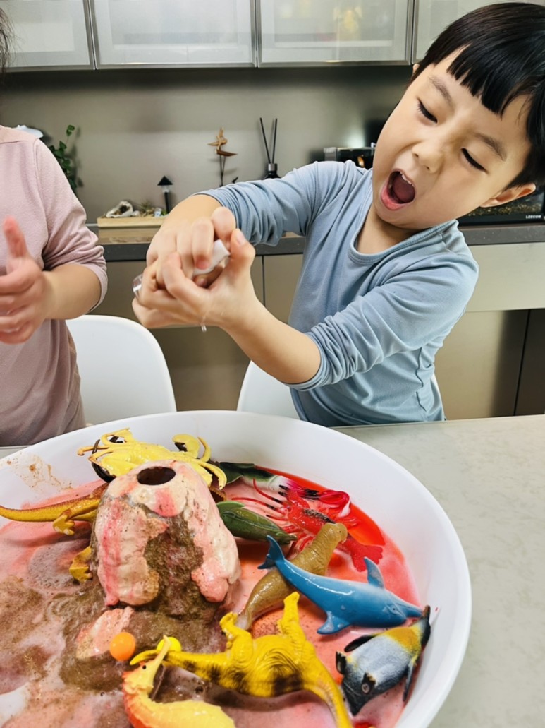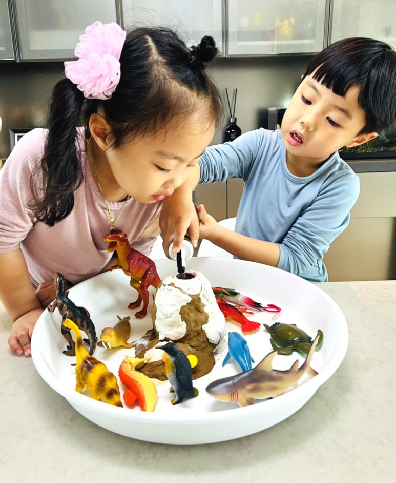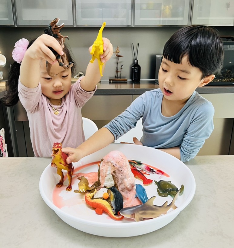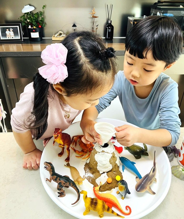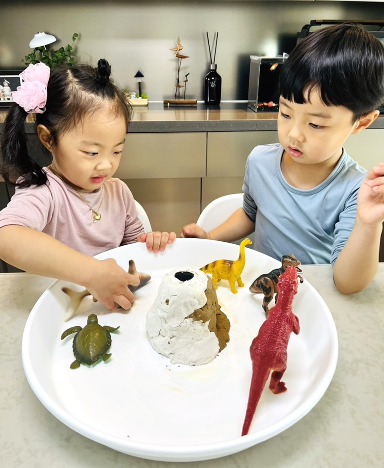 공룡의 집은 베이킹소다를 이용해 화산폭발 실험과 달고나를 하기로 했다.