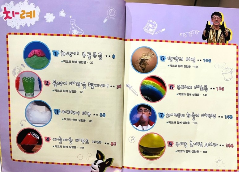 한 가지 소재로 두 가지 실험 방법이 소개되는데 두 가지 실험이 끝나는 도중에 호기심 스티커를 표지에 붙이면 책이 완성된다.